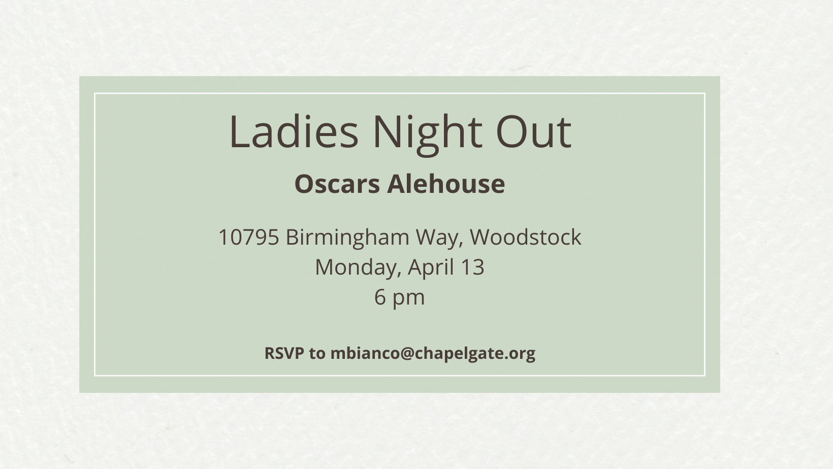 Please join us on Monday, April 13 at 6 pm for our monthly Ladies Night Out.